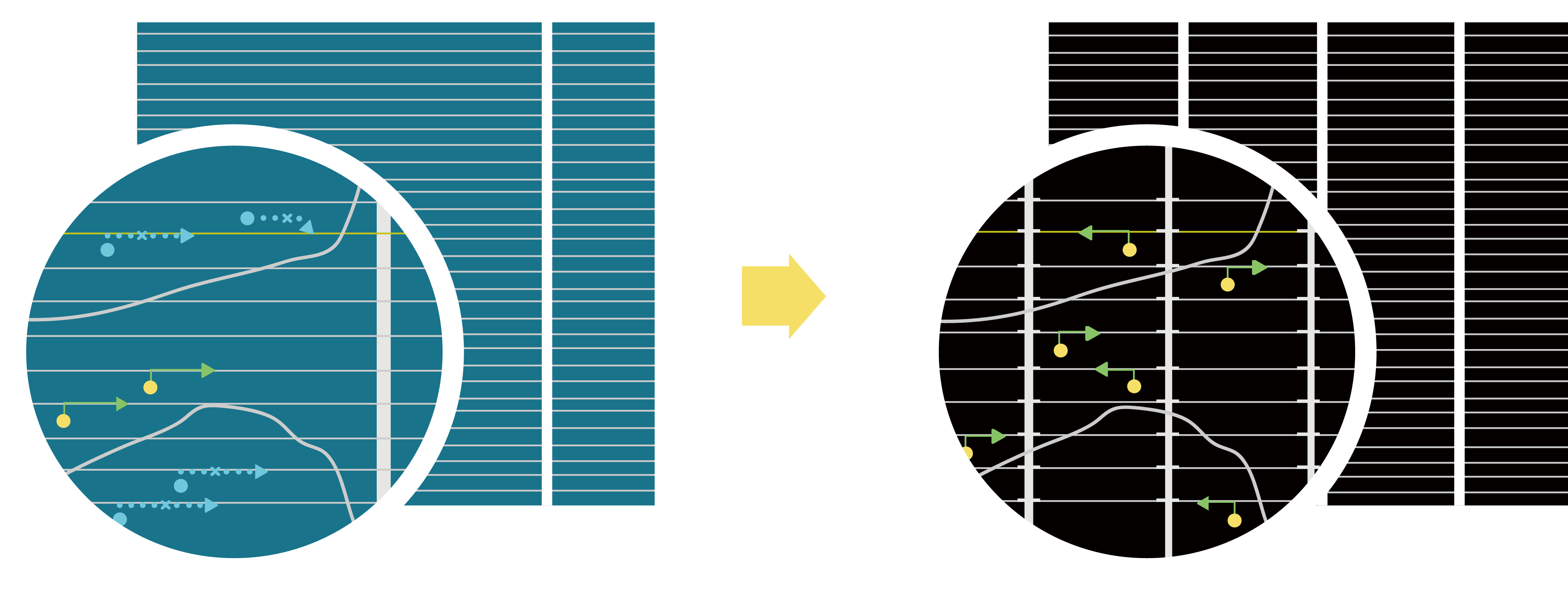 Integration with half cut battery cell reduces the impact of shading, minimizes the impacts in micro-cracks, and decreases loss due to resistance, further improving the module's power efficiency.